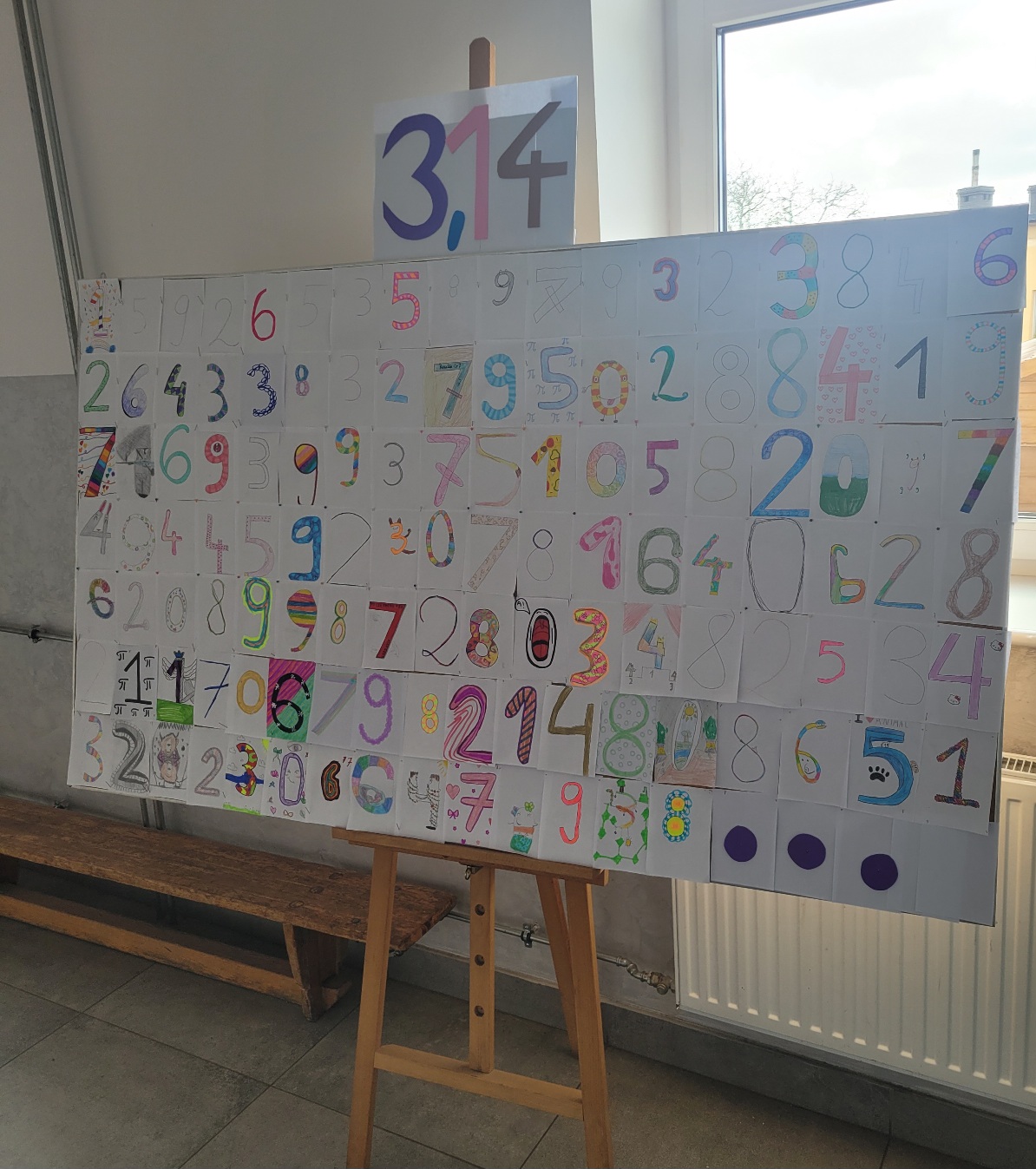 - Każdy uczeń artystycznie upiększył wskazaną cyfrę, a po ich połączeniu powstało nasze wspólne, szkolne rozwinięcie liczby Pi, które dumnie zdobi korytarz.
