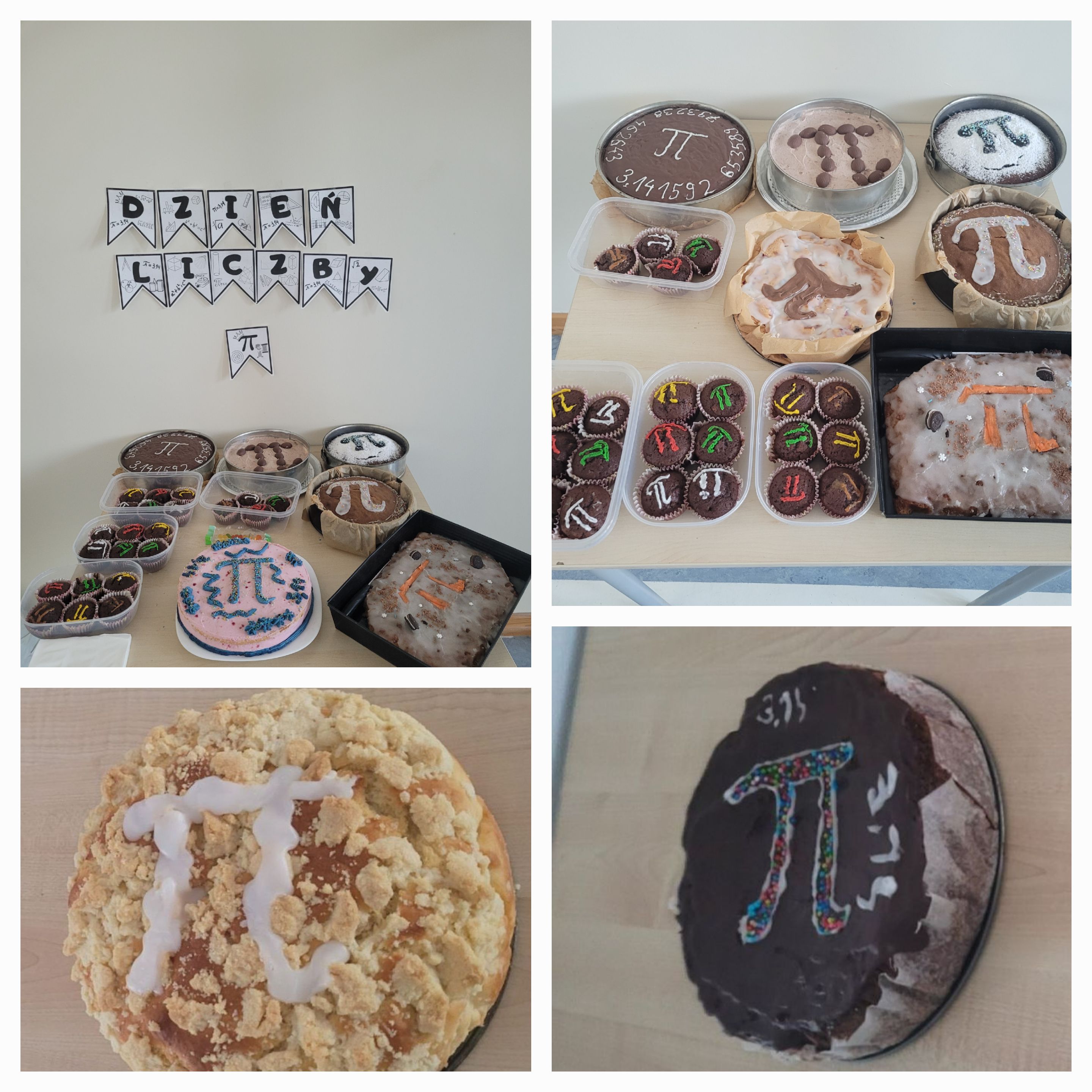 Po sportowych emocjach przyszedł czas na ucztę dla podniebienia. Dzięki ogromnemu zaangażowaniu uczniów i rodziców nasza szkoła wypełniła się zapachem pysznych wypieków. Na stołach królowały okrągłe ciasta, oczywiście dumnie przyozdobione symbolem Pi.