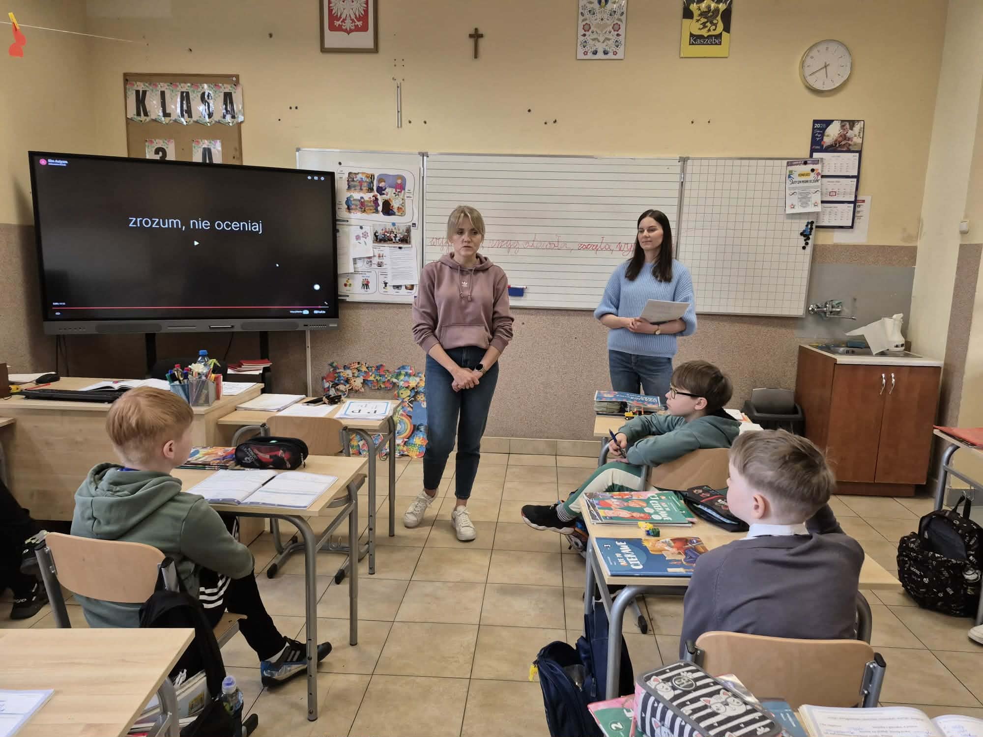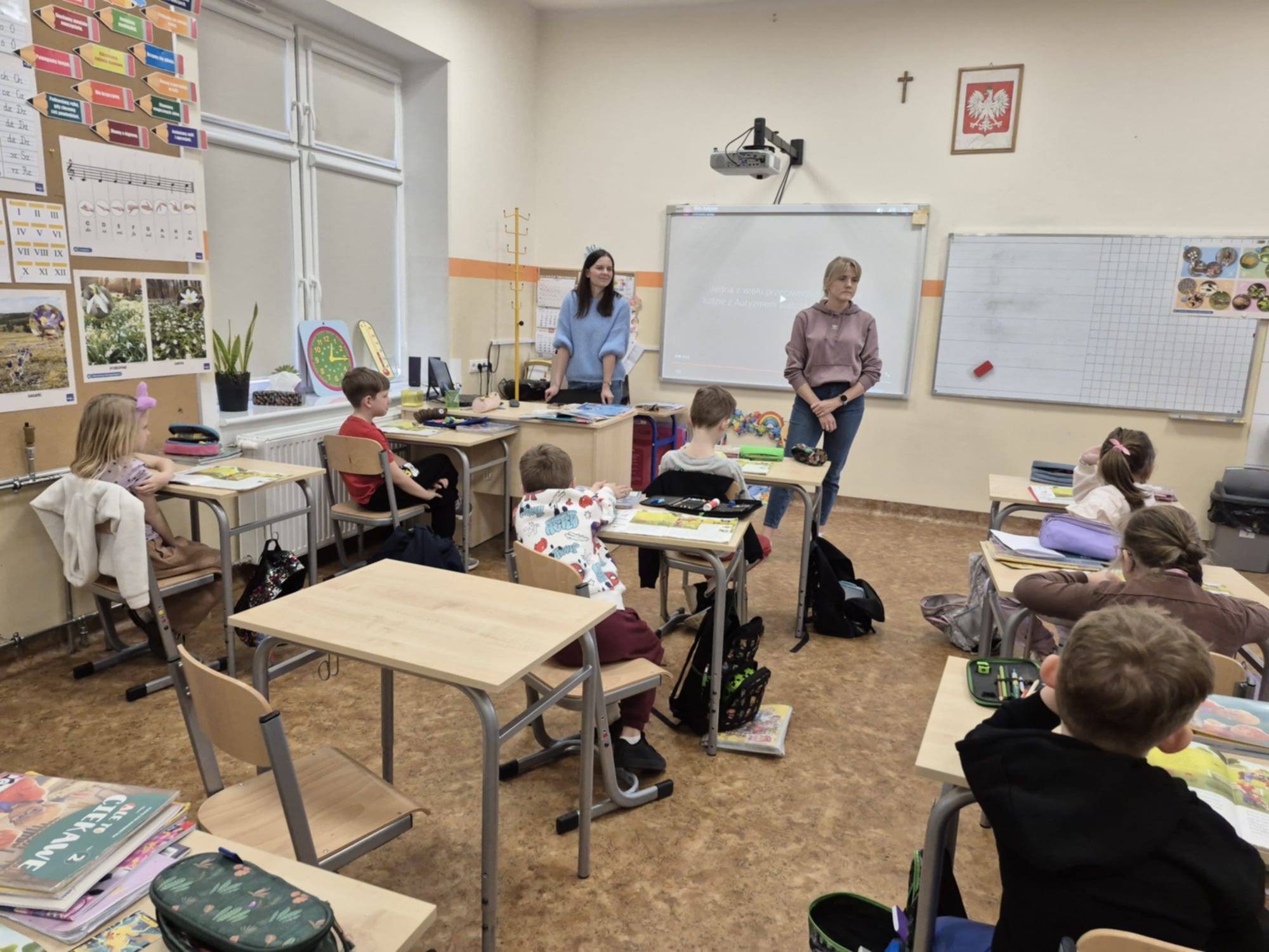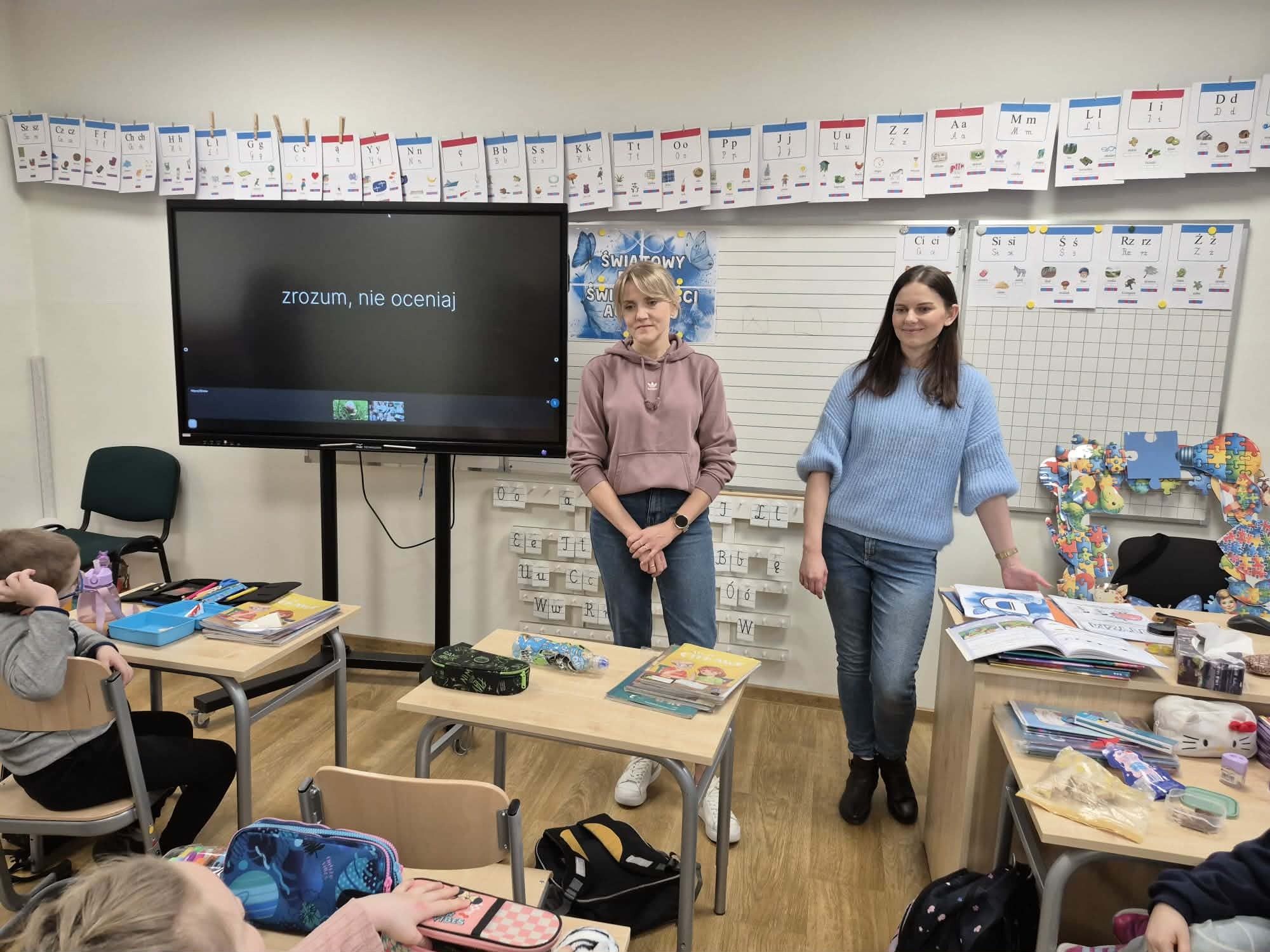 Z okazji Światowego Dnia Świadomości Autyzmu, który obchodzony jest 2 kwietnia, w naszej szkole w minionych dniach w klasach I-III odbyły się zajęcia związane z tematyką autyzmu. Dzieci miały okazję obejrzeć krótki film, przedstawiający życie i codzienne funkcjonowanie tych osób. Był to czas pełen rozmów, refleksji, a także możliwości zadawania pytań, dzięki czemu uczniowie zdobyli nową wiedzę oraz pogłębili tą już nabytą. Dzieci otrzymały puzzle do pokolorowania, które zawierały hasła na znak solidarności osób z autyzmem. Nasza szkoła uczestniczyła również w akcji "Zaświeć się na niebiesko", polegającej na założeniu niebieskiego elementu garderoby, chcąc w ten sposób wyrazić swoją jedność i wsparcie. Na koniec wszyscy razem ustawili się do pamiątkowego zdjęcia.