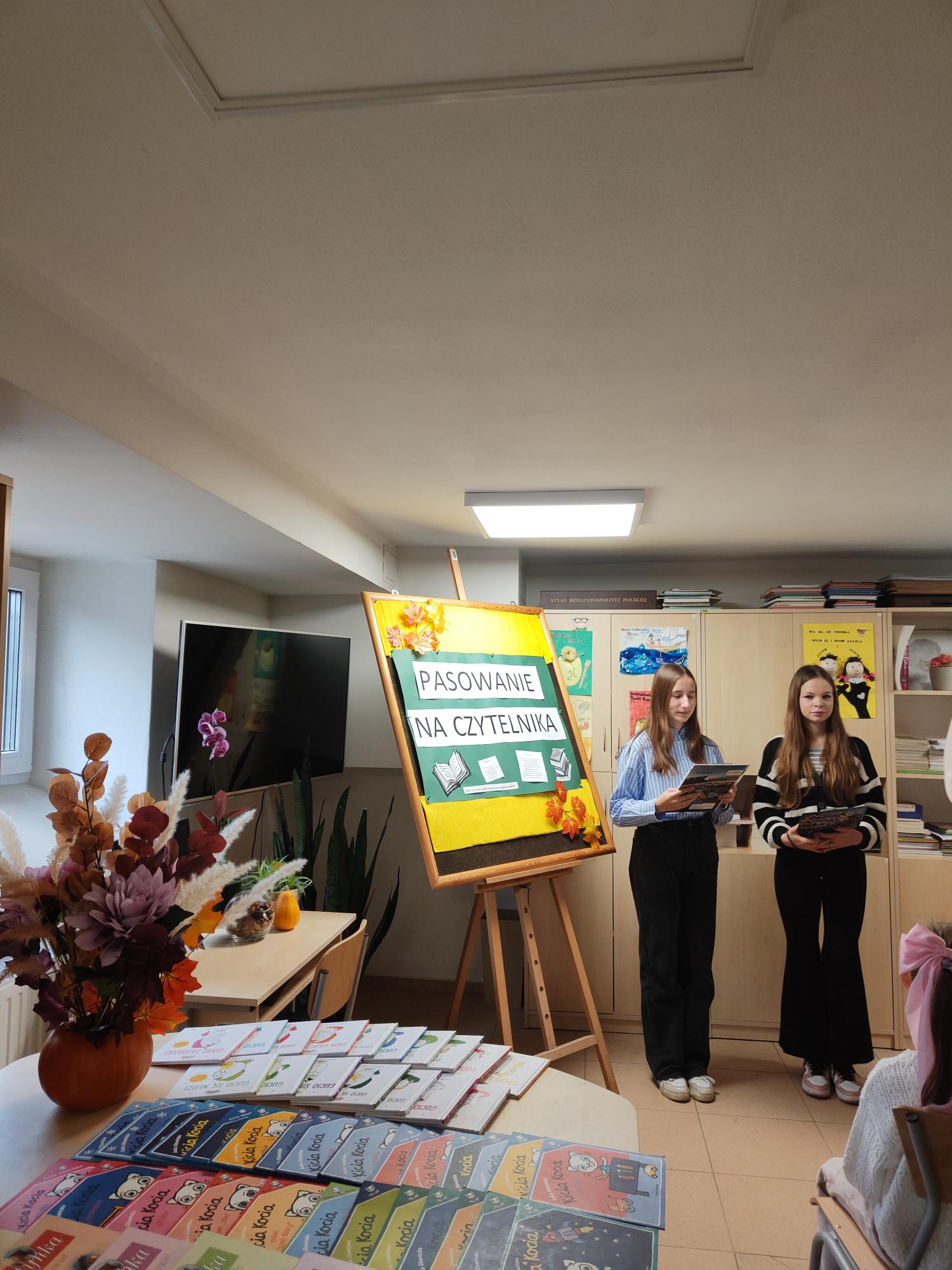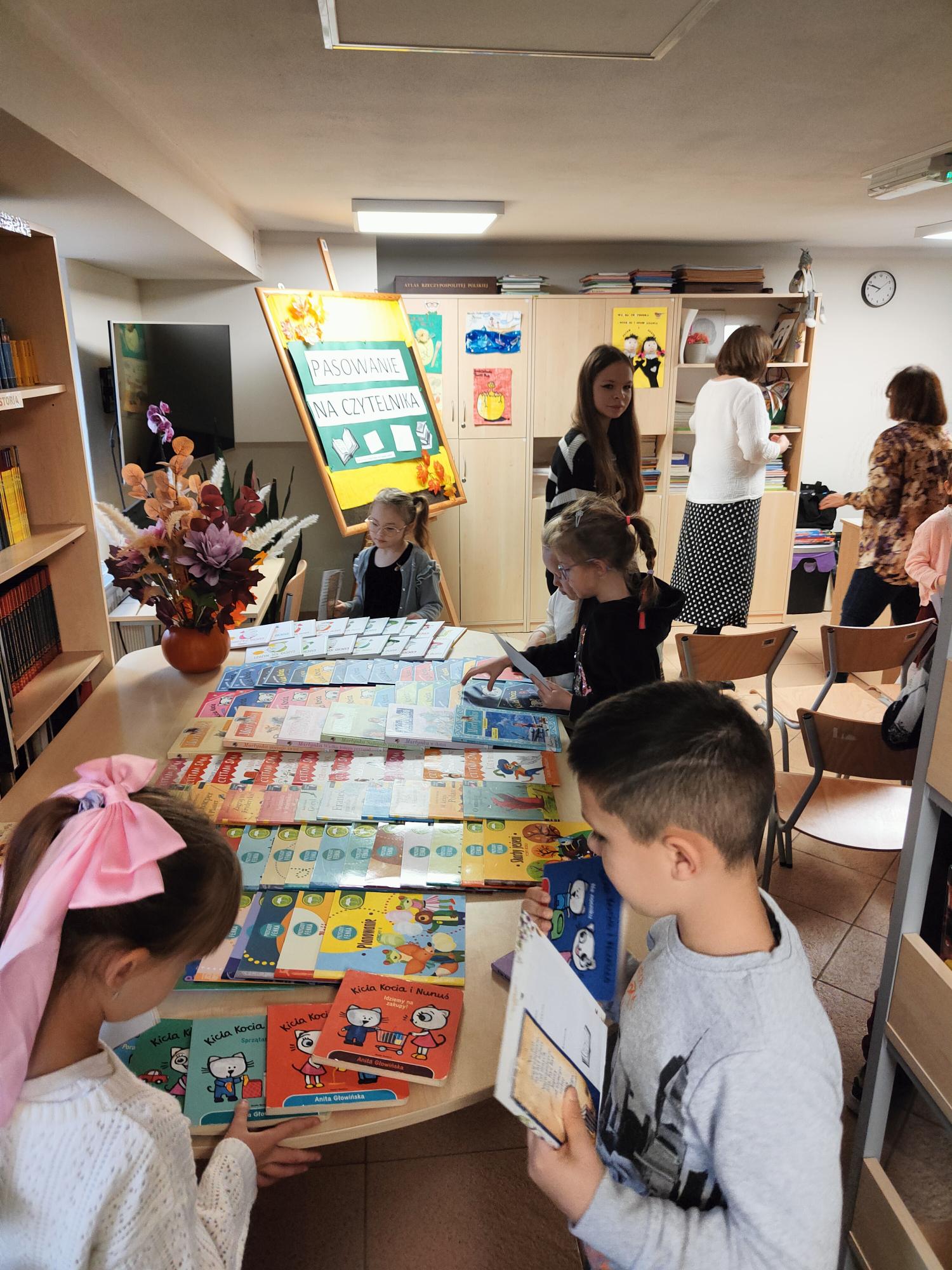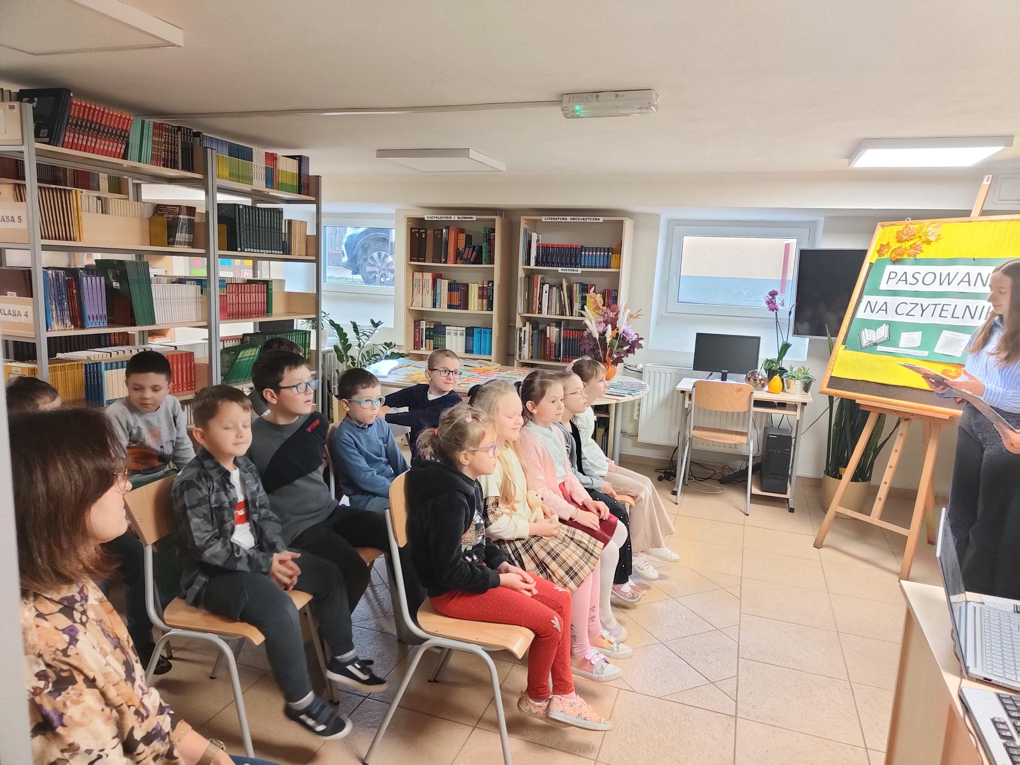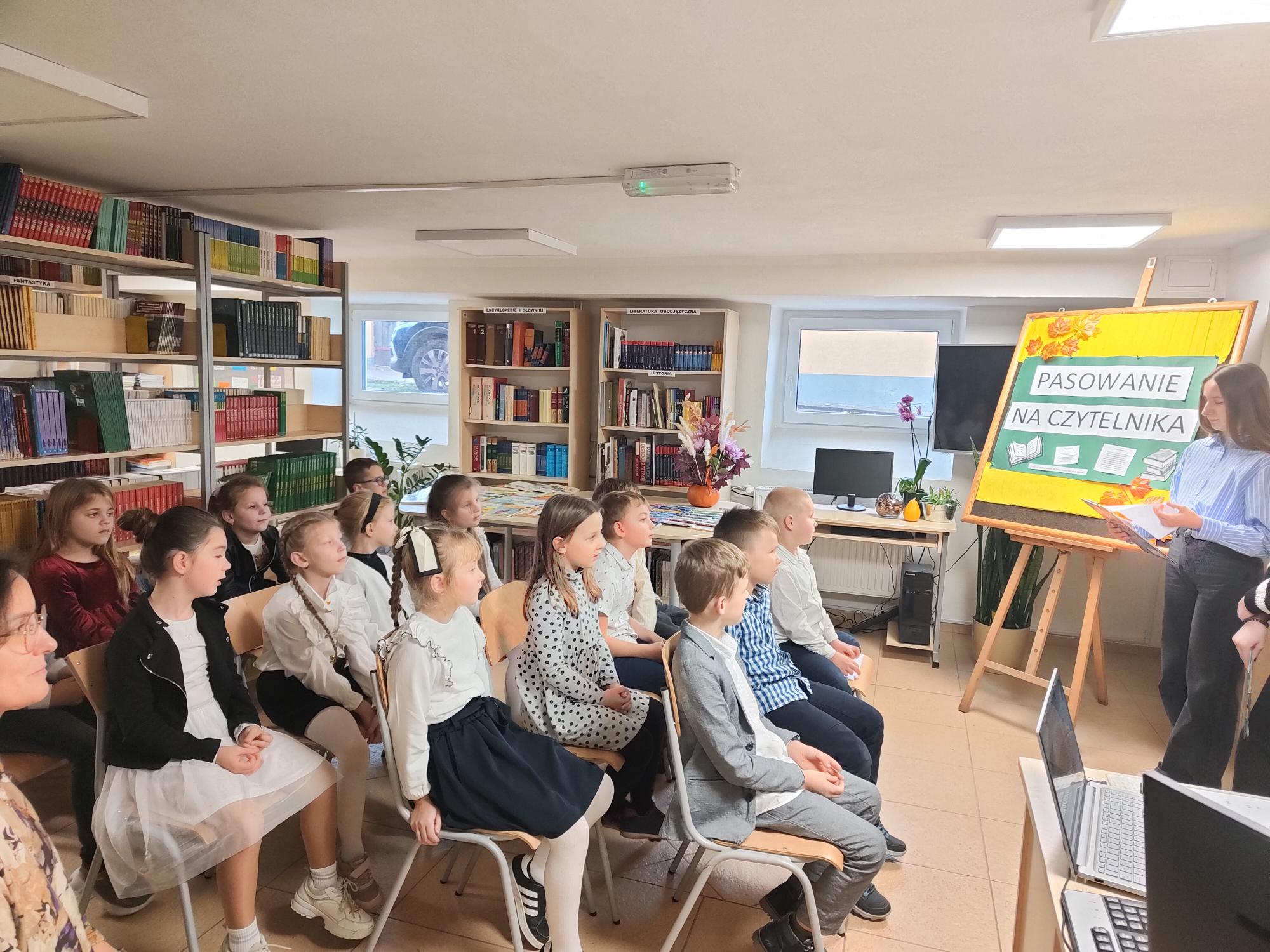 24 października 2025 roku z okazji Międzynarodowego Miesiąca Bibliotek Szkolnych odbyło się pasowanie na czytelnika naszej szkoły. Uczniowie klas pierwszych, 1A i 1B uczestniczyli w zajęciach przygotowanych przez panią bibliotekarkę Sonię Alichniewicz. Obecna była również p. Laura Turowska, zastępca p. dyrektor, która uroczyście pasowała uczniów na czytelników. Podczas zajęć w bibliotece dzieci zapoznały się z zasadami korzystania z biblioteki, regulaminem wypożyczania książek, zasadami dbania o wypożyczone książki oraz higieną ich czytania. Po uroczystości oficjalnej uczniowie z radością samodzielnie wybierali i wypożyczali pierwsze książki. /SA/
