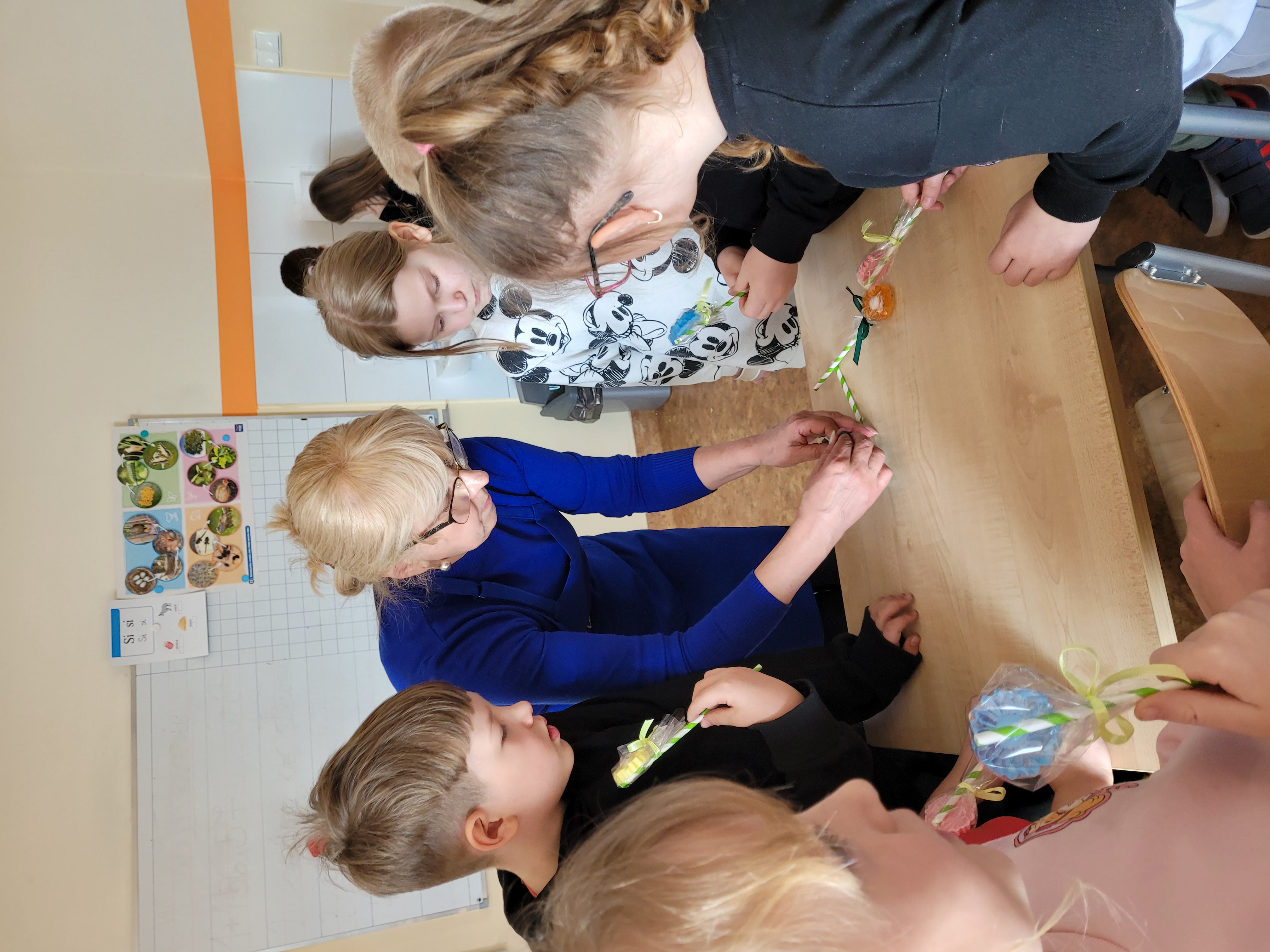 Podczas spotkań dzieci poznały technikę oraz podstawowe materiały i narzędzia potrzebne do wykonania tych niezwykłych wytworów. Pani Teresa w przystępny sposób omówiła kolejne etapy pracy, a następnie zaprezentowała technikę wyrobu kolorowych, wiosennych mydełek. Efektem zajęć były oryginalne prace, które pięknie zapakowane uczniowie mogli zabrać do domu.