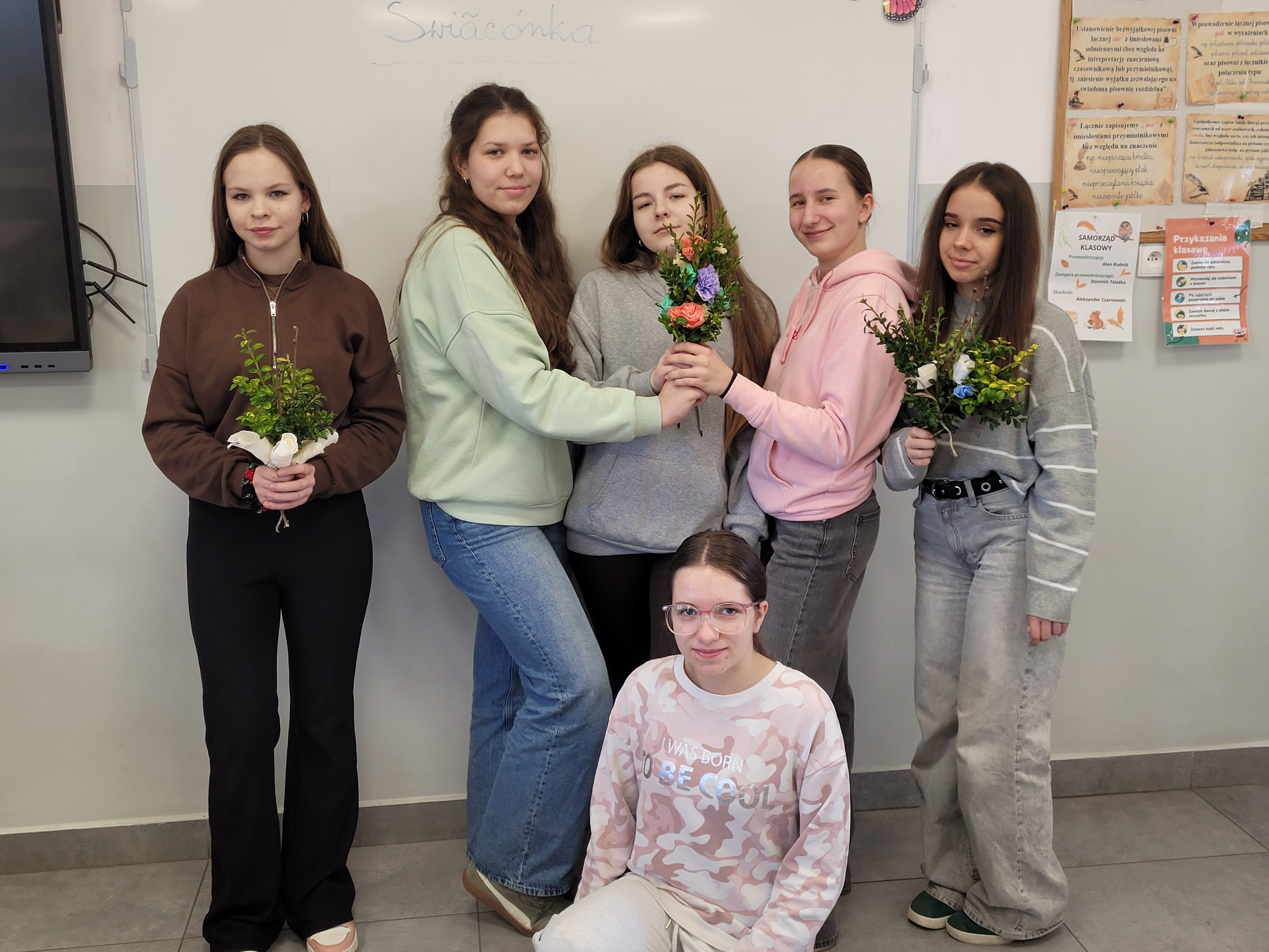 W miłej i twórczej atmosferze uczennice klasy VIII uczące się języka kaszubskiego podczas zajęć z języka regionalnego tworzyły palmy wielkanocne. Dziewczęta z ogromnym zaangażowaniem przygotowywały tradycyjne ozdoby, wykorzystując naturalne materiały, jak również zrobione przez siebie kolorowe kwiaty z krepy i wstążki. Był to kreatywny i radosny wspólnie spędzony czas. MK