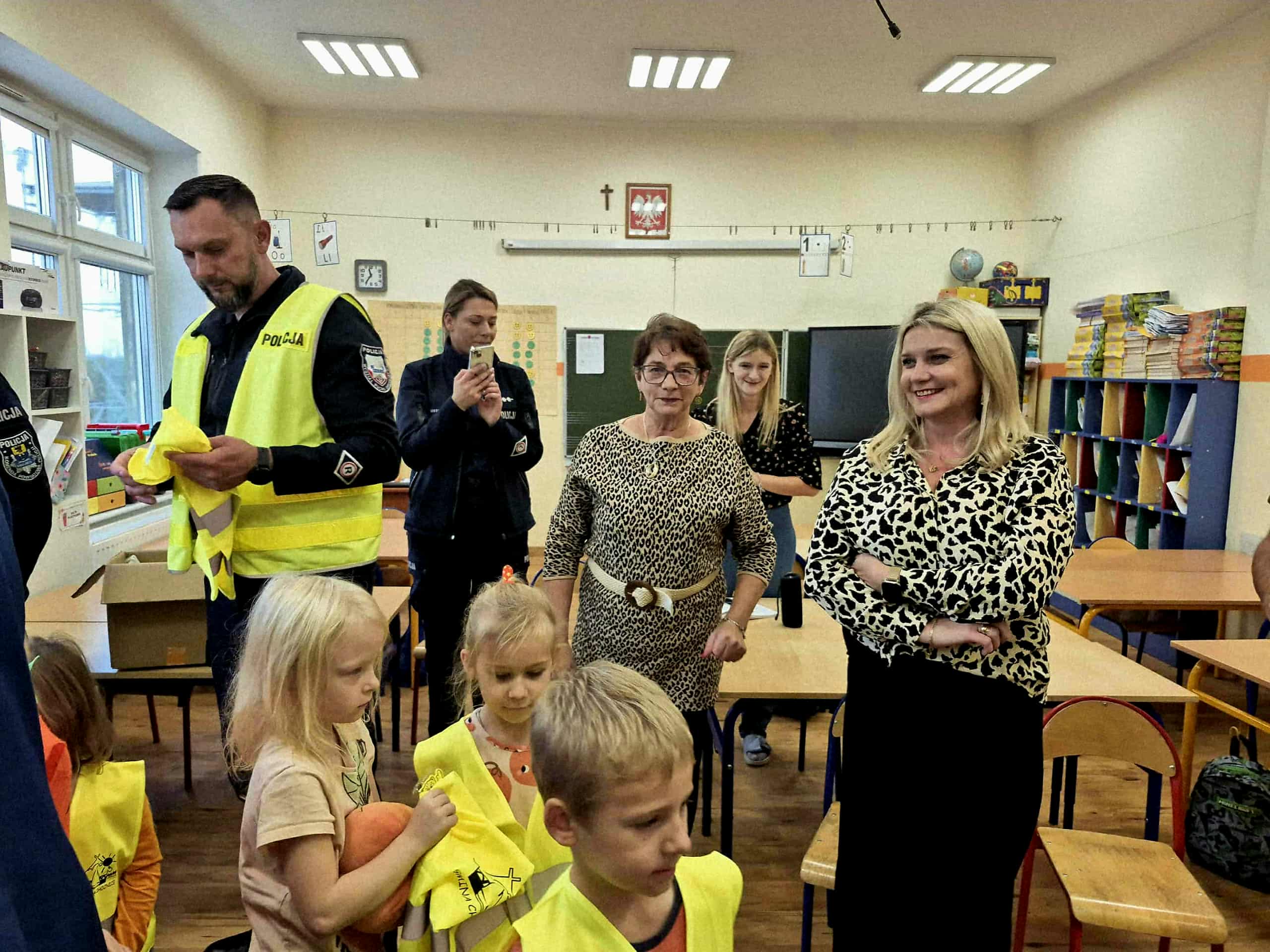 Goście spotkali się z najmłodszymi uczniami, aby porozmawiać o bezpieczeństwie na drodze, widoczności pieszych oraz o tym, jak ważne jest noszenie elementów odblaskowych – szczególnie w okresie jesienno-zimowym. Każde dziecko otrzymało w prezencie odblask i specjalną kamizelkę, by mogło bezpiecznie uczestniczyć w ruchu drogowym.