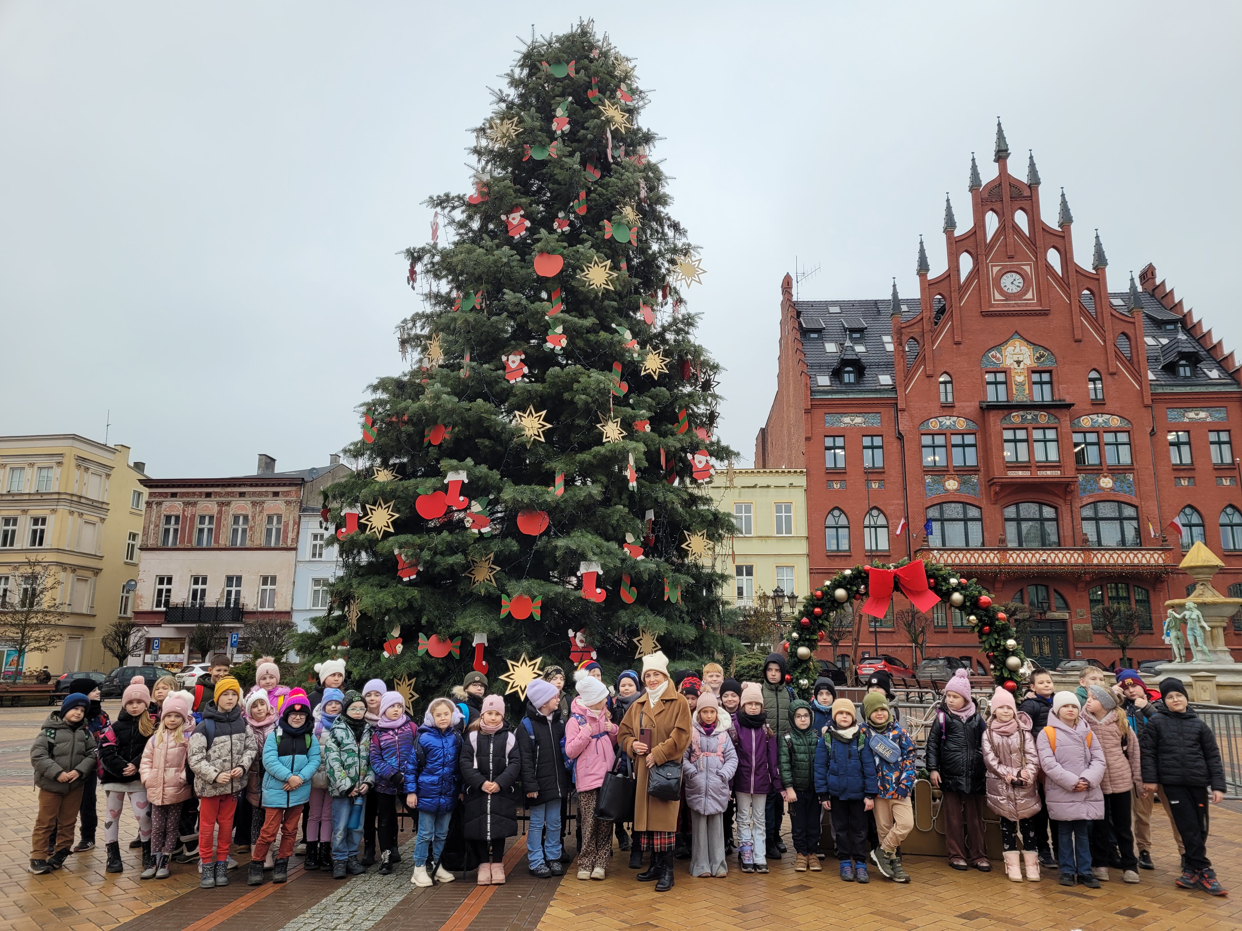 Pamiątkowe zdjęcia z wycieczek zrobiliśmy sobie pod świąteczną choinką na tle ratusza na Starym Rynku, gdzie udaliśmy się na spacer. Uwieńczeniem tego dnia była konsumpcja w McDonald's, która sprzyjała integracji uczniów. /MK/