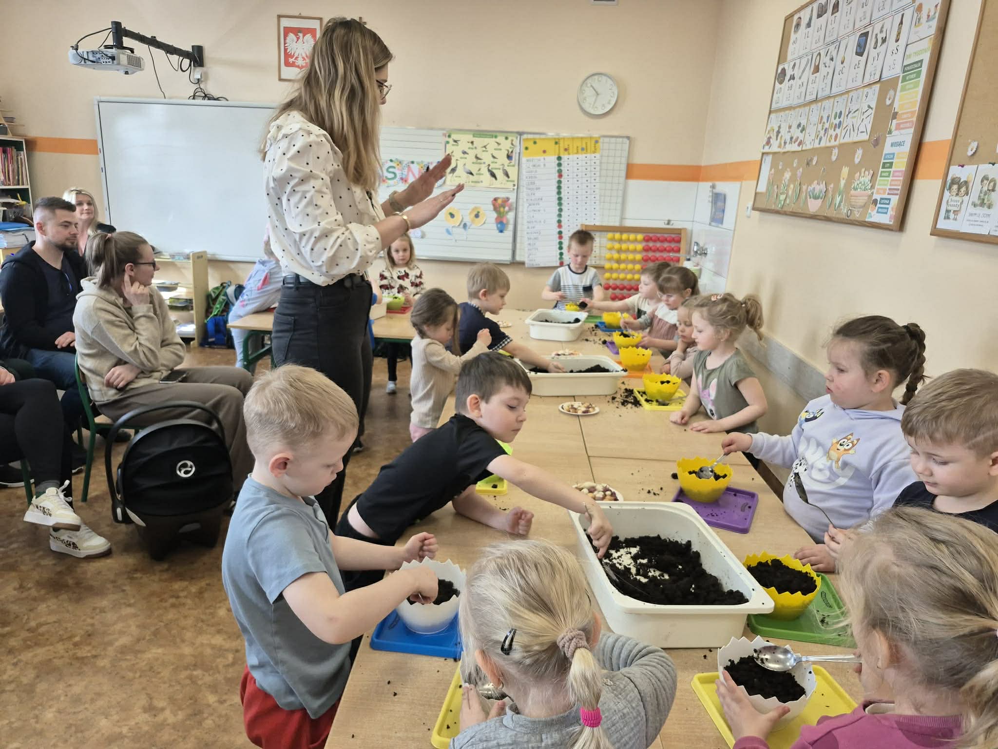 Zajęcia otwarte w grupie przedszkolnej 0c 24 marca odbyły się zajęcia otwarte dla rodziców pt. „Czego potrzebują rośliny do życia?”. Dzieci aktywnie uczestniczyły w rozmowie, zabawach muzycznych oraz zadaniach związanych z segregowaniem i przeliczaniem cebulek. Największym zainteresowaniem cieszyło się założenie własnej hodowli cebuli Rodzice mieli okazję obserwować pracę dzieci oraz ich zaangażowanie podczas zajęć. Dziękujemy rodzicom za obecność!
